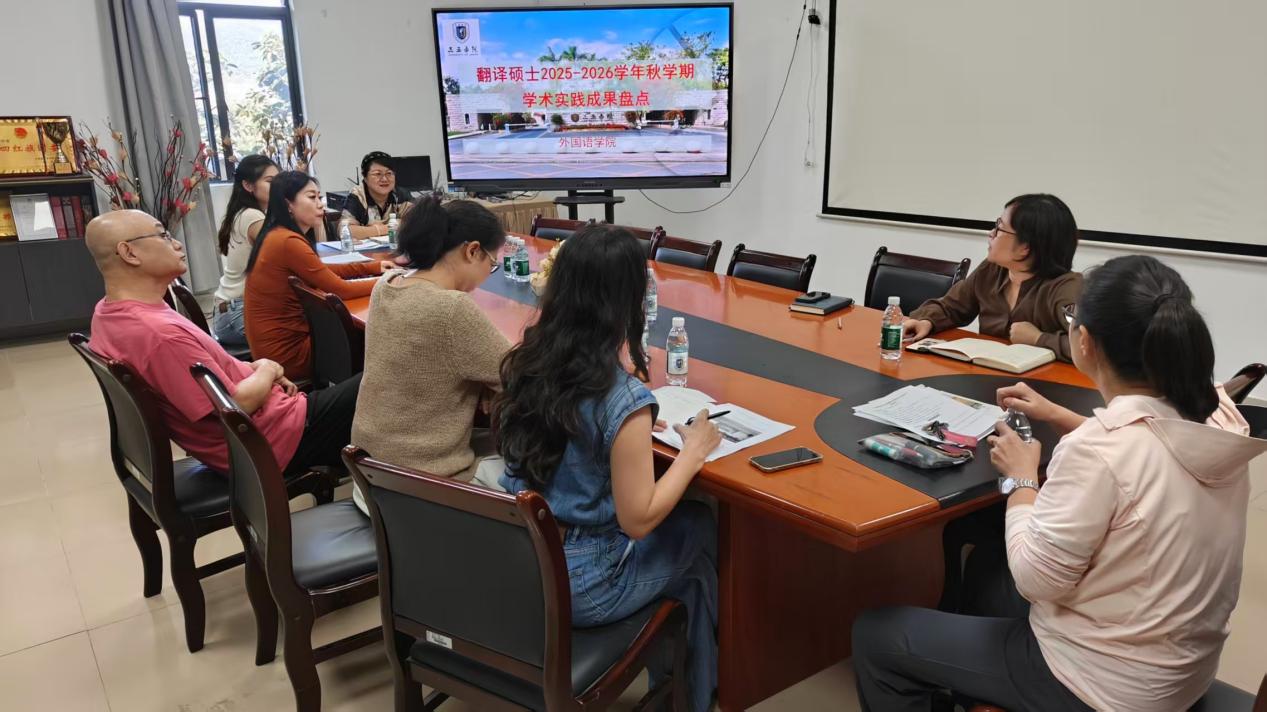 2025年12月24日下午14:30,三亚学院外国语学院在学院会议室成功举办2025-2026学年秋季学期翻译硕士学术实践成果盘点研讨会。会议由院长助理赵婷主持,翻译硕士英语笔译与俄语笔译方向全体任课教师参加,共同总结本学期产教融合实施成效,围绕学生实践成果开展交流研讨,为下一阶段实践教学的深化凝聚共识。