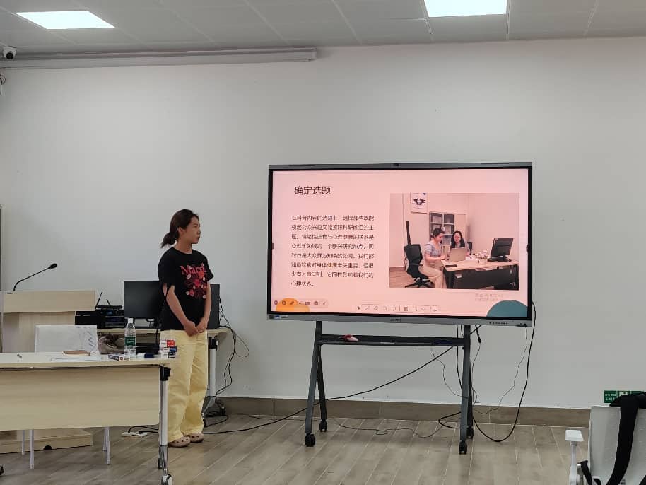 在会议的第二项内容,由2025级研究生代表分享他们本学期以来所取得的学术及实践成果。2025级社会工作专业秦煜青同学汇报了其主持申报的海南省研究生创新科研课题《社工与革命老区高龄烈属结对:生活支持与红色传承的实践模式探索》。该课题已成功入选省级拟推荐名单,其研究源于在五指山等地对辍学青少年、退役军人及高龄烈属群体的深度调研,展现了将学术思考与国家关怀、地方记忆相结合的研究取向。