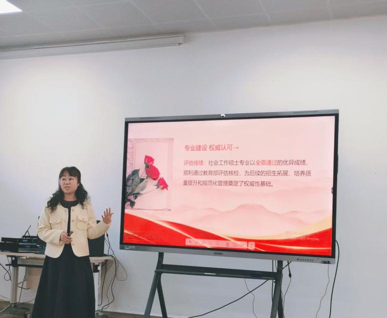 会议收官环节,黄玲老师全面梳理展示了2025 年秋学期研究生教育工作的亮眼成绩单,内容涵盖省级及以上竞赛获奖、科研项目立项等重要成果。数据显示,学院学位点教师科研立项成果斐然,应用心理专业两位教师牵头斩获包括 2项国家社科基金在内的多项高层次课题。尤为振奋人心的是,学院社会工作硕士点首次参评教育部学位授权点专项评估,便以全票通过的优异成绩收官,这一成果不仅标志着学院高层次应用型人才培养质量获得权威认证,更为学子成长搭建起坚实优质的发展平台,直观彰显了社会学院强劲的育人实力与广阔前景。参会学子备受鼓舞,纷纷表示此次活动锚定了奋进方向,未来将对标先进、深耕钻研,努力成长为兼具学术素养与实践能力的复合型人才。