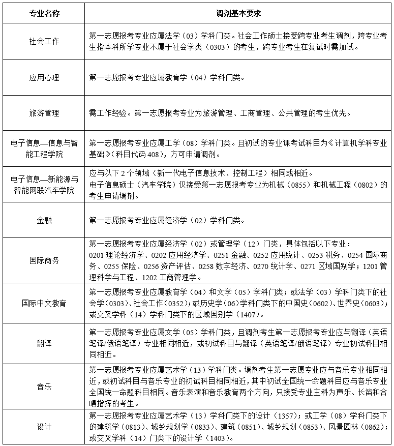 三、调剂基本要求